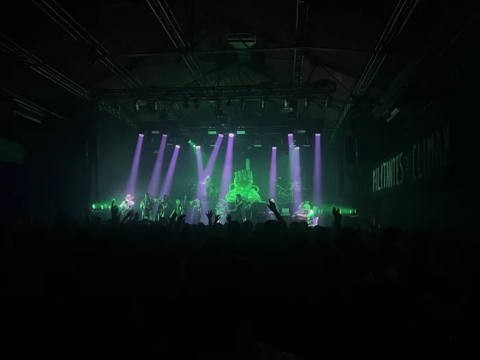 La banda liderada por El Auelo vuelve con una puesta escénica cargada con performance y esa mezcla de groove, oscuridad y catarsis a la que el grupo ya nos tiene acostumbrados.