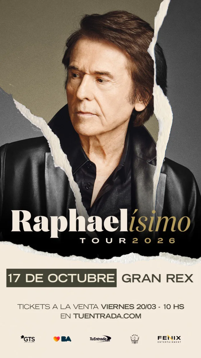 La estrella de la música en español y Persona del Año 2025 de la Academia Latina de la Grabación, llega a Buenos Aires el 17 de octubre con Raphaelísimo: un espectáculo que recorre más de seis décadas de éxitos junto a las canciones de su nuevo álbum “Ayer... aún”, un homenaje a la chanson francesa.