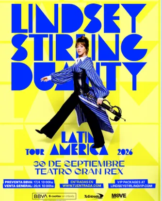 Reconocida por su extraordinaria habilidad como violinista electrónica, bailarina e intérprete, Lindsey se ha ganado al público mundial con sus espectaculares presentaciones en vivo, que giran constantemente y agotan localidades en recintos icónicos alrededor del mundo.