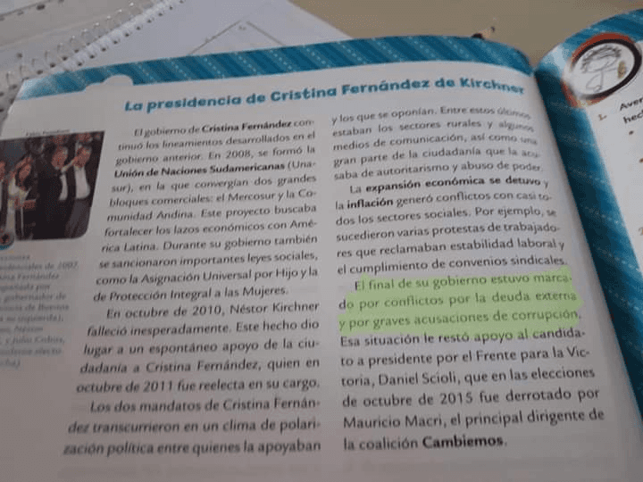 Un libro de la editorial Santillana despertó una gran polémica en las redes sociales luego de que se viralizaran las páginas donde habla de los gobiernos de Cristina Kirchner y Mauricio Macri, de manera condenatoria en un caso y condescendiente en el otro.