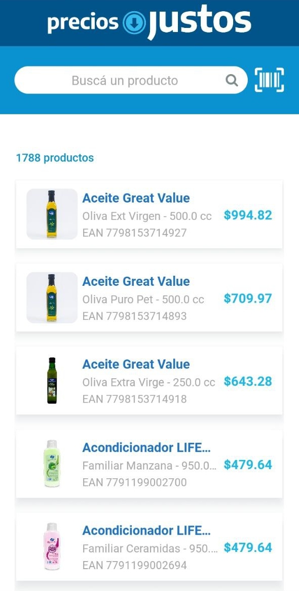 La app según el Gobierno sirve para escanear el código de barras de cada producto y saber si está alcanzado por el acuerdo de precios y se puede reportar en caso de que no corresponda el precio o no esté disponible. Además, se puede buscar el listado de los productos de Precios Justos con sus valores, donde actualmente figuran 1788, es decir, 288 más de los 1500 que anunció el Ministerio de Economía.