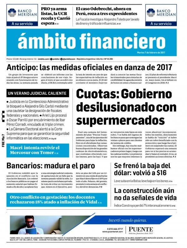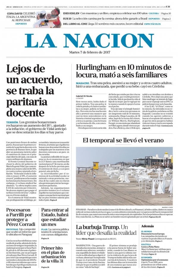 Para que comiences bien informado la mañana del 07/02, te acercamos las noticias más importantes que destacaron en sus portadas los principales diarios de la Argentina: Paritaria docente, dólar a $16, Argentina jugará repechaje por la Davis y cayó el autor del séxtuple crimen de Hurlingham.