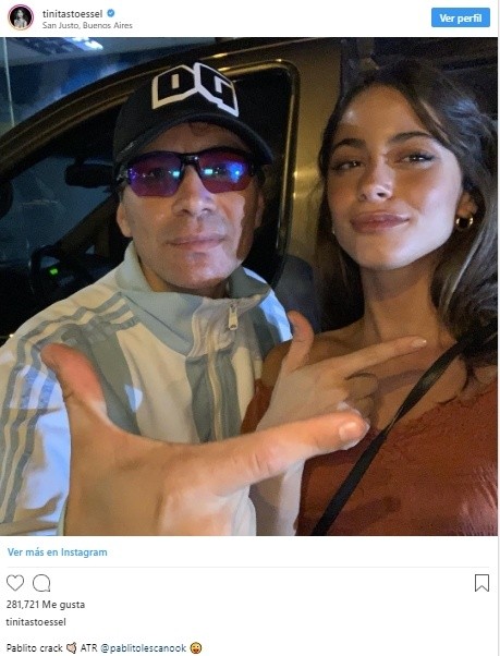 "Pablito crack. ATR", escribió la artista en la publicación que ya reúne 280.000 likes. Por supuesto, el cantante no se quedó atrás y le respondió: "Tini, te quería agradecer por venir al show sos una masa guacha alta onda la tuya PD: Marita te ama. Sabelo, Tini, sabelo".