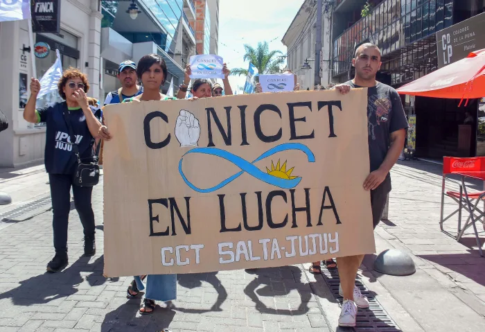 En la capital jujeña, los manifestantes confluyeron en una sola protesta al llegar a Casa de Gobierno con banderas, pancartas y el sonido de redoblantes y trompetas y participaron de un acto de unidad "en rechazo al ajuste".