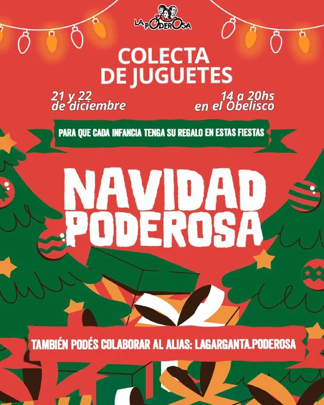 Los días 21 y 22 de diciembre en el Obelisco y en distintos puntos de las ciudades más importantes del país, la Garganta Poderosa convoca a participar de una jornada solidaria de juguetes.