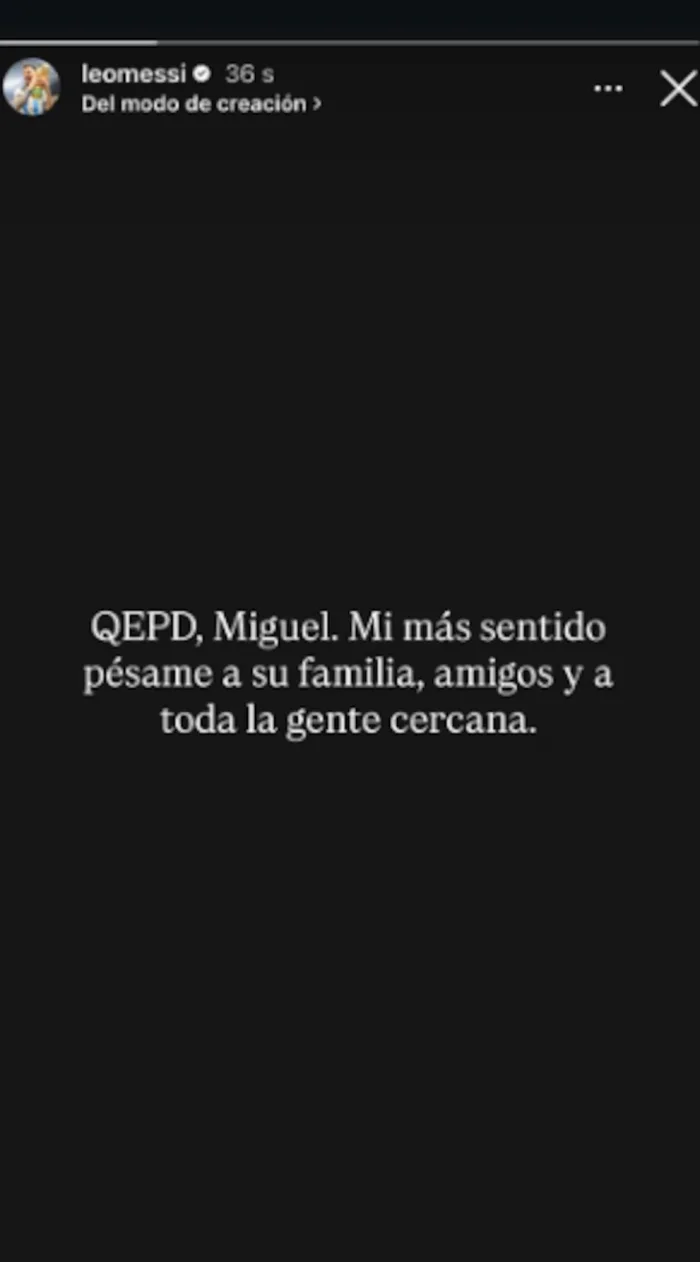 “QEPD, Miguel. Mi más sentido pésame a su familia, amigos y a toda la gente cercana”, escribió Messi, quien se encuentra concentrado con la Selección Argentina en Miami para los amistosos contra Venezuela y Puerto Rico.