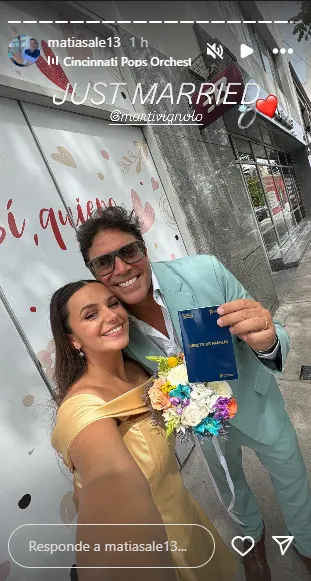 Tras un año de intenso romance, Matías Alé y Martina Vignolo pasaron por el registro civil de Mar del Plata, destino que eligieron para contraer matrimonio y sellar su relación. Rodeado de familiares y amigos, la pareja se mostró feliz y emocionada por el presente y lista para continuar con las celebraciones.