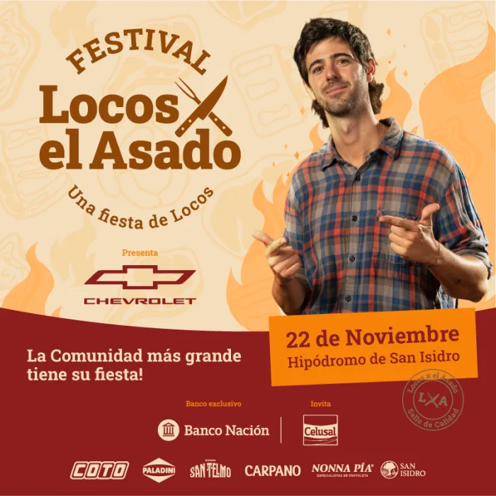 El festival de Locos x el Asado promete ser una jornada llena de diversión, música, juegos y la mejor oferta gastronómica de la mano de Luciano “Laucha” Luchetti.