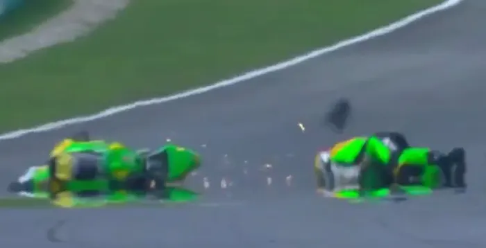 El español José Antonio Rueda (KTM) y el suizo Noah Dettwiler (CIP) tuvieron un gravísimo accidente durante el Gran Premio de Malasia por el Campeonato de Moto 3, en donde el oriundo de Basilea fue arrastrado por la pista.