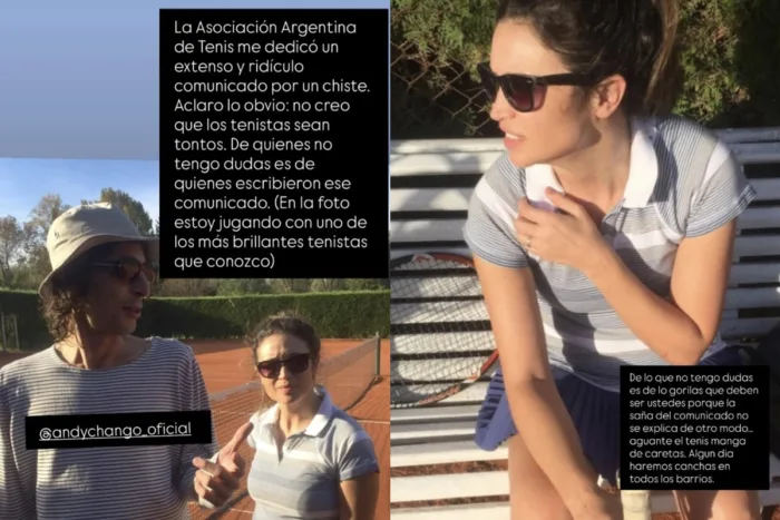 La situación causó tanto revuelo que Mengolini le respondió a la AAT a través de sus redes sociales, en las que aclaró que su comentario había sido en tono humorístico. "La AAT me dedicó un extenso y ridículo comunicado por un chiste. Aclaro lo obvio: no creo que los tenistas sean tontos. De quienes no tengo dudas es de quienes escribieron ese comunicado", escribió en sus historias de Instagram, donde compartió fotos suyas jugando al tenis. Y contraatacó: "De lo que no tengo dudas es de lo gorilas que deben ser ustedes porque la saña del comunicado no se explica de otro modo... Aguante el tenis, manga de caretas. Algún día haremos canchas en todos los barrios".