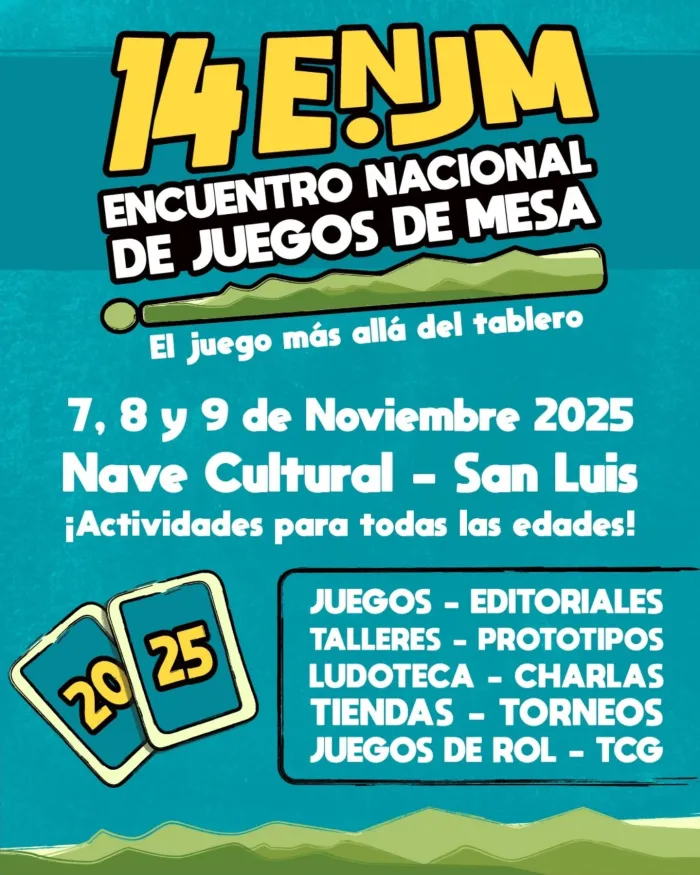 De esta manera el próximo 7, 8 y 9 de noviembre llega a San Luis el encuentro Nacional de Juegos de Mesa donde la comunidad jugona e interesados podrán acceder a las novedades en materia lúdica y ¡Por supuesto jugar!