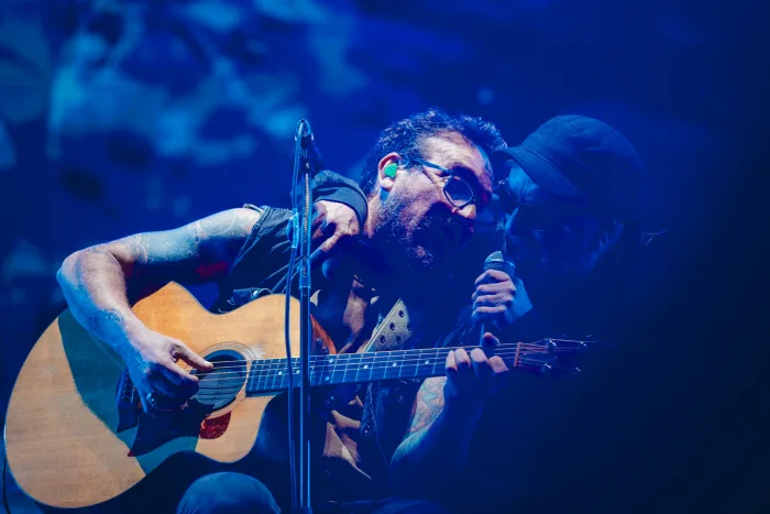 Hacia la mitad del show todo estaba muy arriba, sonó Burbujas con una cantidad de burbujas arriba del escenario que generaron unas visuales increíbles mientras el Enano y el Cebolla saltaban y recorrían todo el escenario. Después llegaron Soldado de plomo y Escobas abrieron paso a la nostalgia, mientras “Clarobscuro” recordó el costado más introspectivo de la banda. La lista fue un repaso generoso por todo su recorrido, desde los clásicos de Deskarado hasta las nuevas búsquedas de Discopático.