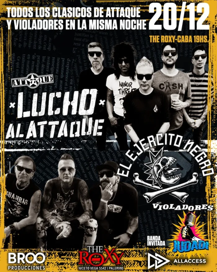 El próximo sábado 20 de diciembre, LUCHO AL ATTAQUE y EL EJERCITO NEGRO se juntan para cerrar el año en una noche a puro punk rock con los clásicos de Attaque 77 y Los Violadores.