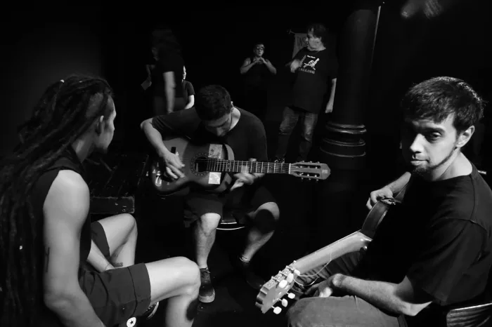 Estamos por ingresar a la obra documental Cromañon nos pasó a todos, escrita y dirigida por Gustavo Moscona, considerada de interés cultural por la legislatura porteña. Mariela Bonilla, encargada de la puesta en escena, nos propone mirarnos al espejo de la antesala del Espacio Cultural Sabato, de la facultad de económicas de la UBA. Nos hace preguntarnos qué es lo primero que pensamos cuando nos vemos.