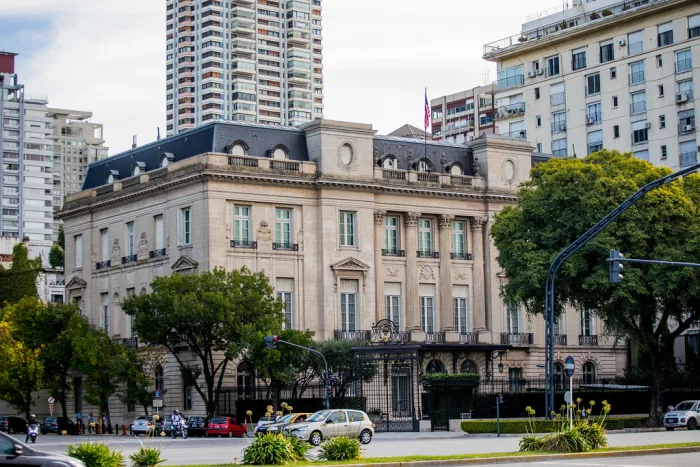 Ante la convocatoria, el Ministerio de Seguridad dispuso un operativo especial alrededor de la sede diplomática, ubicada sobre la Avenida Colombia, en Palermo.