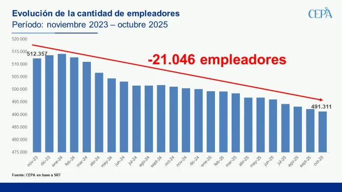 Son datos de la Superintendencia de Riesgos del Trabajo. Sólo el año pasado, se registró una caída de 8.800 empleadores.