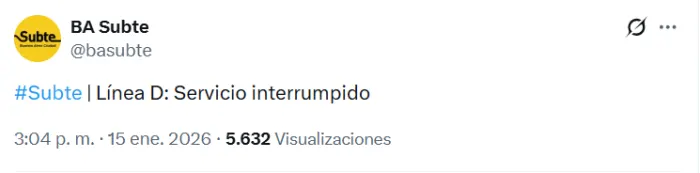 El servicio también se interrumpió en la línea D de subte que frenó los recorridos entre Catedral y Pueyrredón, mientras que la línea H pudo reestablecer el recorrido por demoras y completarlo.