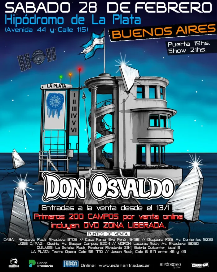 Luego de un 2025 cargado de shows, Don Osvaldo, da inicio al 2026 el sábado 31 de Enero en Mar del Plata y el día de hoy anuncian un nuevo show previsto para el SÁBADO 28 DE FEBRERO en el HIPÓDROMO DE LA PLATA.