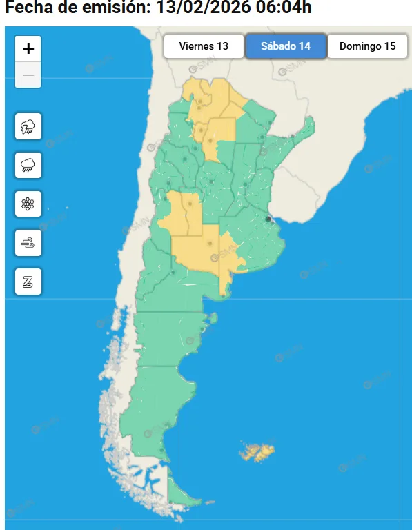Rige una alerta amarilla por tormentas desde este viernes 13 de febrero y durante el fin de semana en varias provincias del país.
