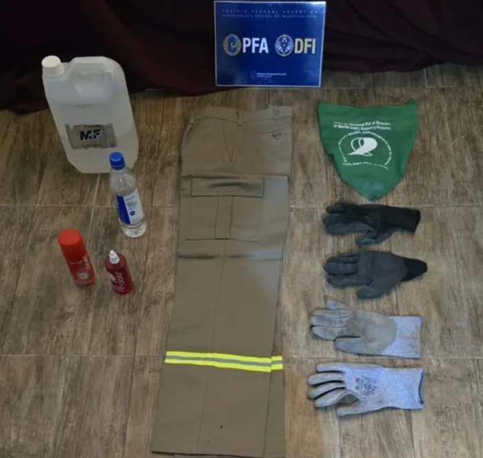 Durante el allanamiento en su vivienda, los efectivos secuestraron bidones con combustible, guantes térmicos y dispositivos electrónicos. También encontraron la vestimenta que habría utilizado durante la jornada de disturbios y material que, de acuerdo al parte oficial, estaría vinculado a grupos de ideología anarquista.