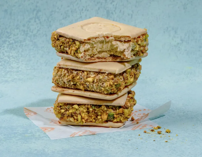 Con el pistacho integrado desde sus comienzos, Obrador Florida celebra el día de este fruto seco con dos de sus productos icónicos: el alfajor helado de pistacho y la barra de pistachos, una versión alternativa y original del clásico almendrado.