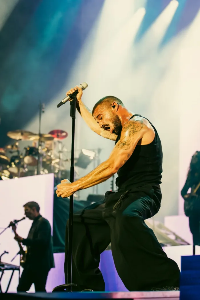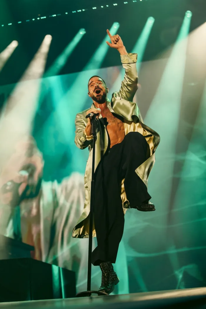 El arranque a pura pirotecnia lo encontró enfundado de negro al ritmo de "Pégate" y "María", un ensamble perfecto entre historia y modernidad con dos canciones que supieron posicionarlo en los rankings del mundo entero.