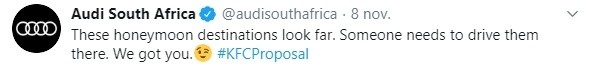 Mzansi please help us find this beautiful couple, re batla ho ba blesser �� DM us any leads, there might be a Finger Lickin' Good surprise in it for you too. Batho ba Vaal re thuseng! We love love ��❤️ #KFCProposal pic.twitter.com/6bj89dtj4j