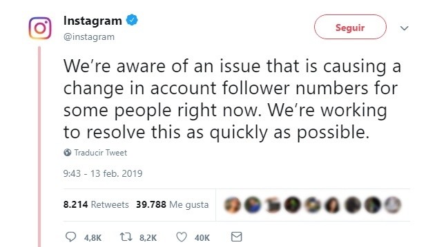 "Somos conscientes de un problema que está causando un cambio en los números de seguidores de la cuenta para algunas personas en este momento. Estamos trabajando para resolver esto lo más rápido posible", twittearon desde la compañía llevando tranquilidad a los usuarios.